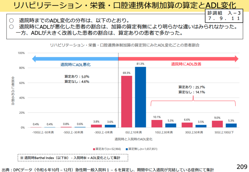 一方で、「高齢者の入院において、退院後に向けたリハビリテーションを周知する良い機会であると考えるため、入院中にリハビリテーションを実施していない場合に算定出来ないようにするかは慎重な議論が必要」との慎重論も示された。