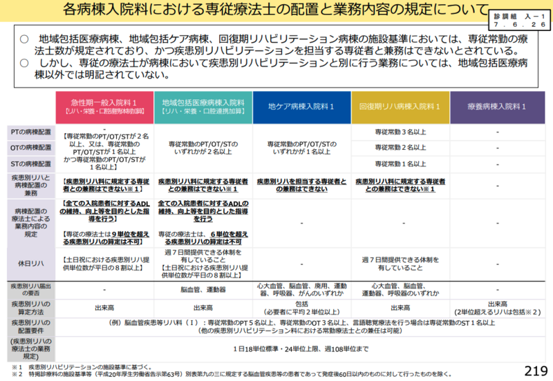 - 疾患別リハビリテーション料の専従要件明確化と病棟業務の位置づけ