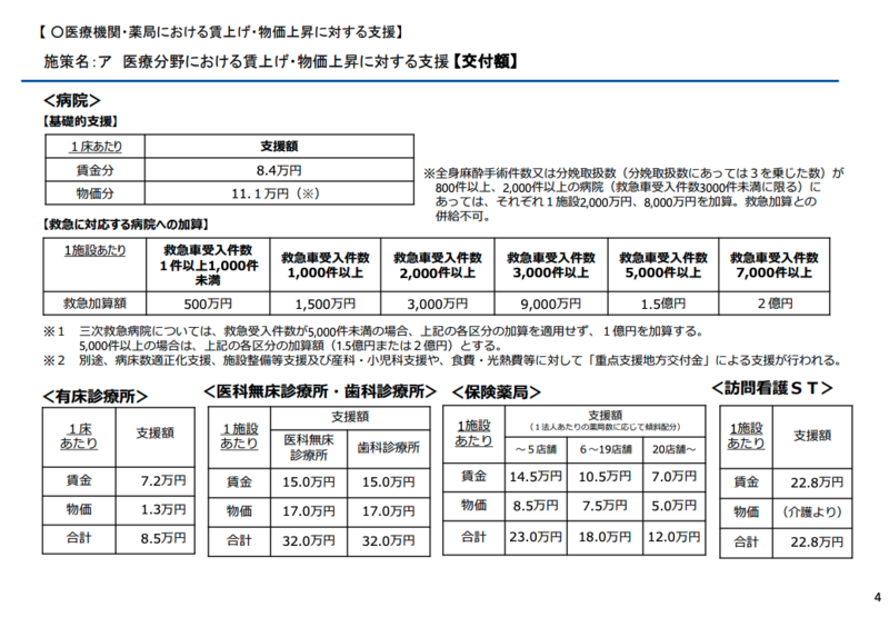 病院1床あたり約20万円、訪看は1施設約23万円の支援へ