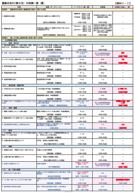 今回の委員会で審議されたベースライン値と目標値の見直し案は、今後、厚生科学審議会地域保健健康増進栄養部会への報告を経て正式決定されます。新たな目標値に基づく告示改正も予定されており、現場への正式な周知は来年度(令和8年度)以降となる見通しです。