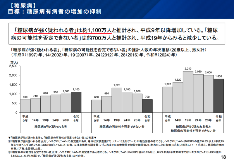 糖尿病予備群1,100万人、LDL目標も厳格化