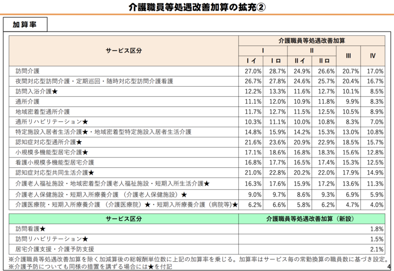 今改定で注目すべきは、これまで処遇改善加算の対象外だった訪問リハビリテーション、訪問看護、居宅介護支援にも新たに加算が設けられた点だ。