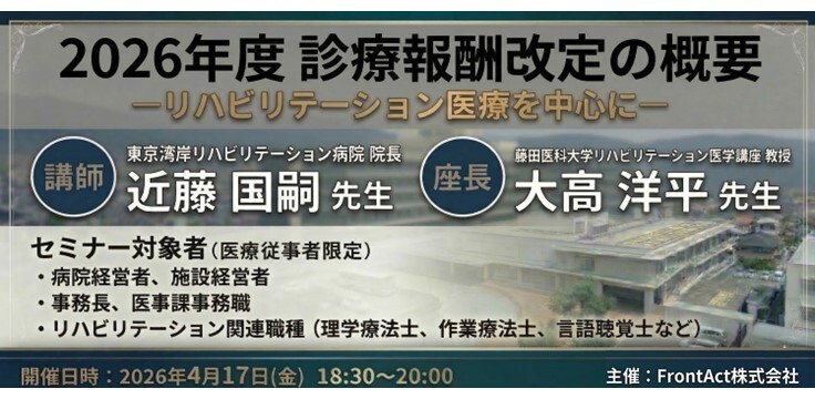 2026年度の診療報酬改定にあたり、リハビリテーション医療に関わるポイントを解説するWEBセミナーを開催いたします。