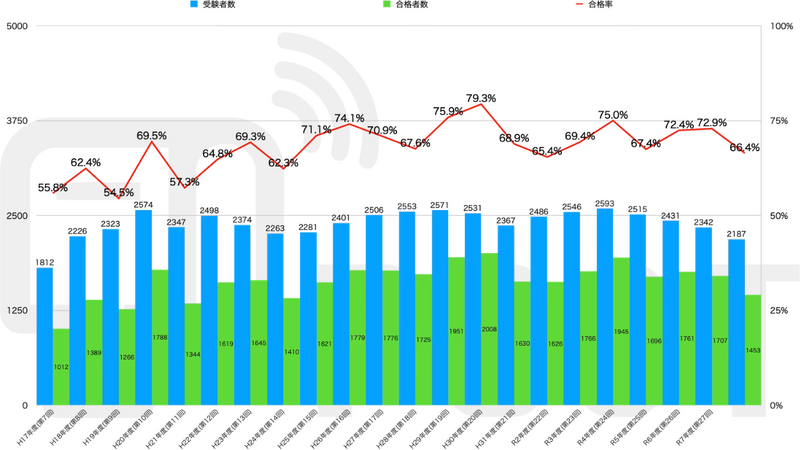 受験者数 / 合格者数 / 合格率
