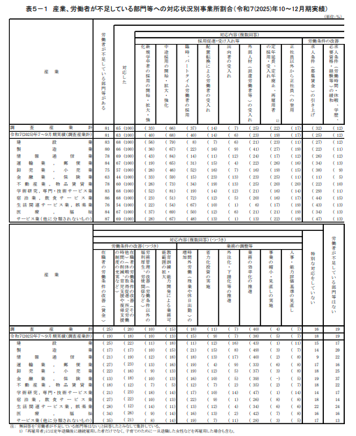 不足への対応、「中途採用」69%が最多――賃金改善は34%