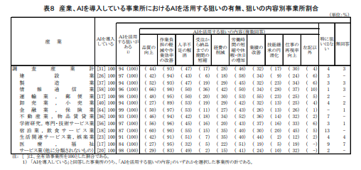 AI活用の狙い、医療・福祉では「労働時間短縮」51%が際立つ