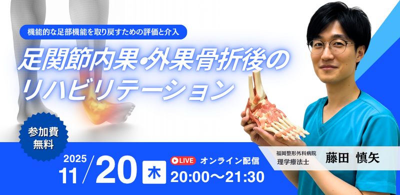 【無料セミナー】臨床で使える!足関節内果・外果骨折後のリハビリテーション 〜機能的な足部機能を取り戻すための評価と介入〜