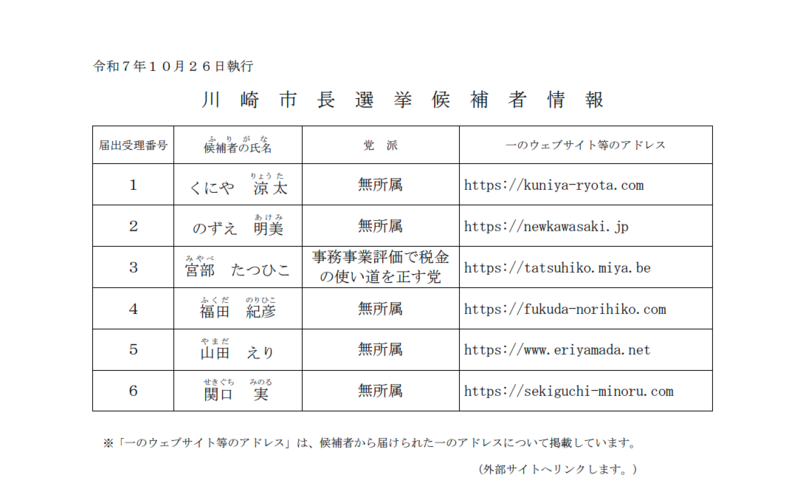 本記事は、川崎市長選挙に関する報道として、立候補者の経歴と政策を中立的に紹介するものであり、特定候補者への支持や投票の呼びかけを目的とするものではありません。選挙運動期間中の報道にあたり、公職選挙法(第138条の2・第142条等)に基づき、公平・公正な扱いを行います。