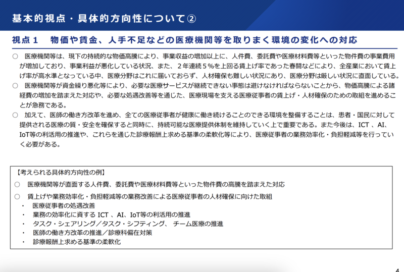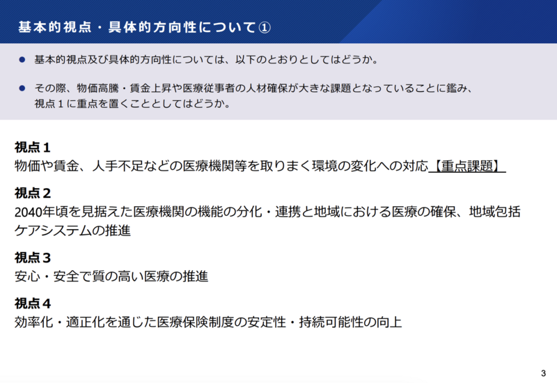 診療報酬改定、「物価・賃金対応」を重点課題に