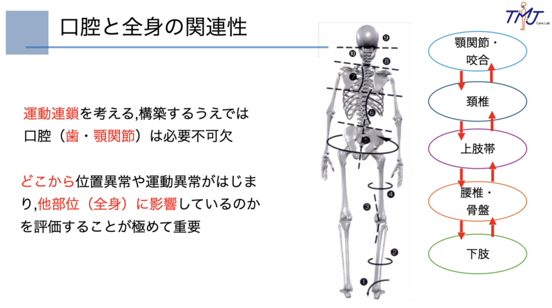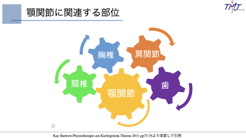 顎関節の機能不全は私たちが普段悩む頚部や頚部や肩・肩甲帯症状に関連していたり、逆に頚部や肩・肩甲帯機能が顎関節に影響するケースもあります。