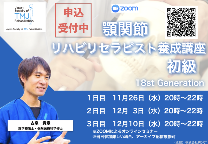 その知識・評価・治療技術を基礎から体系的に学べる"唯一無二"の講座が、11月(初級)開催決定!
