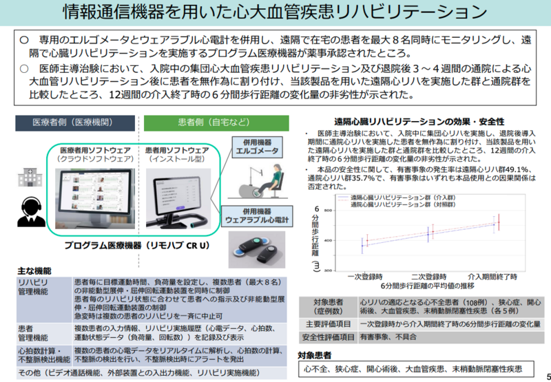 厚生労働省は今回の総会で、遠隔心臓リハビリテーションを実施するプログラム医療機器「リモハブ CR U」の概要と治験データを提示した。