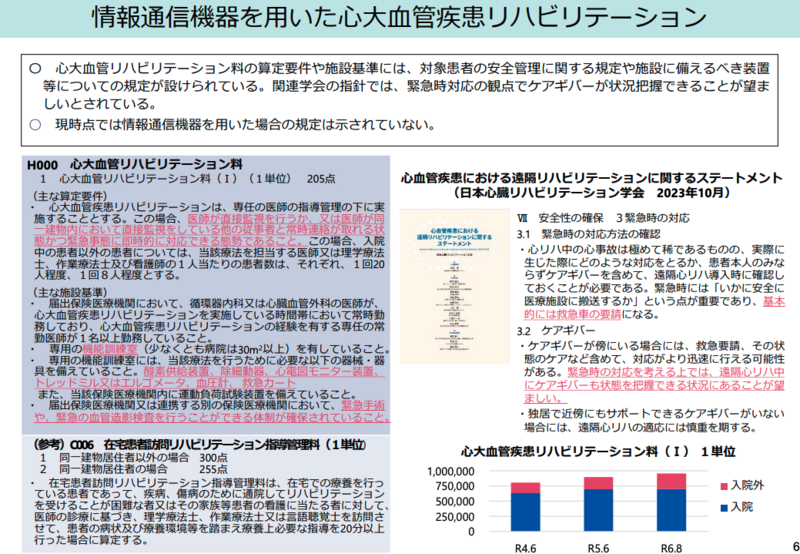 「オンライン診療の原則である『有効性、必要性、安全性』を最優先に検討すべきだ。本来、心大血管リハビリは病院においても一定面積以上の機能訓練室、酸素供給措置、除細動器などの機器設置、緊急の手術・検査体制などが求められる『リハビリの中でもとりわけ安全性への配慮』が求められるものである」