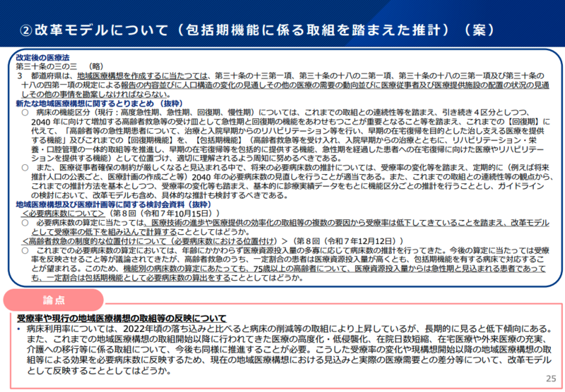 「包括期」に高齢者急性期の半数を振り分け―推計方法の骨格が明らかに