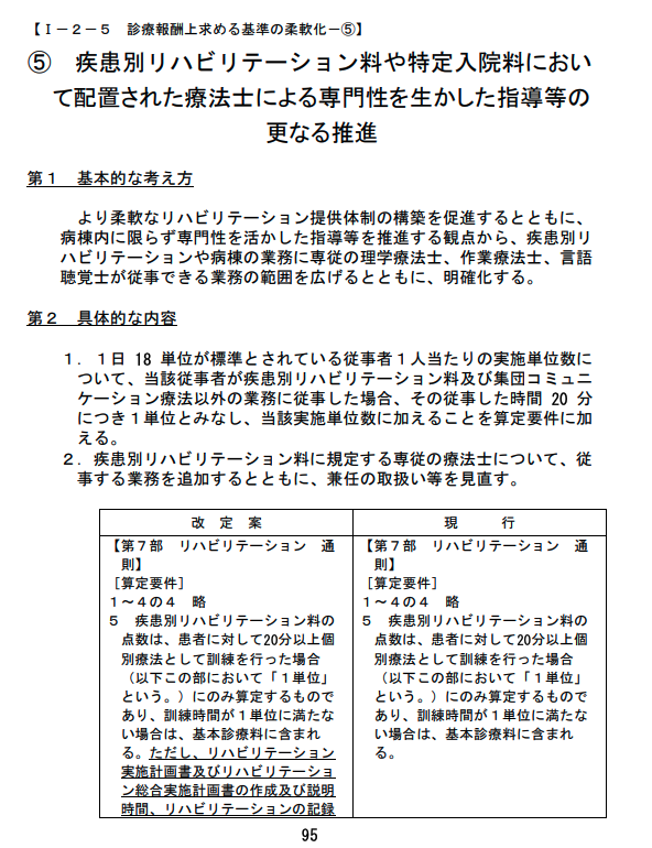 • 同一病棟内に回復期リハ病棟と地域包括ケア病棟等が併設されている場合の専従療法士の「兼任」を明確化。