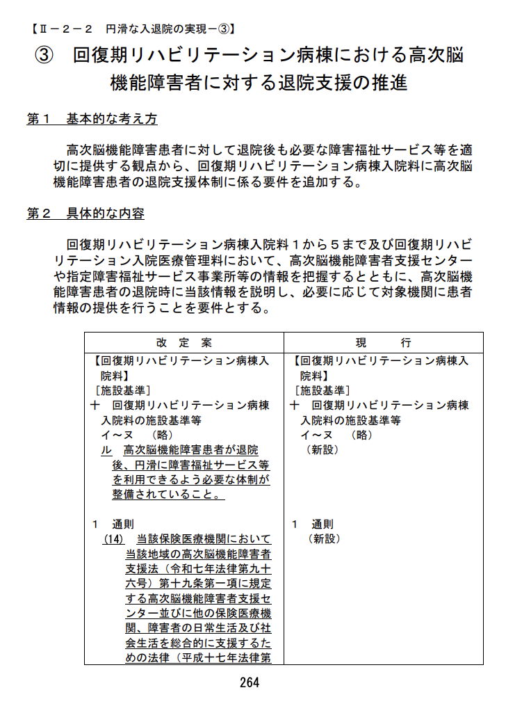 • 高次脳機能障害: 支援センター等の情報把握・患者への説明・提供を要件化。